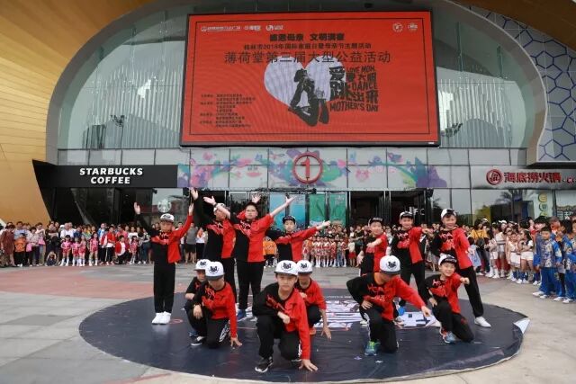 5月13日,由桂林市妇女联合会、七星区妇女儿童工作委员会主办; 桂林市妇女儿童活动中心、 七星区文体局、七星区妇联协办;由CHUC广西联盟、薄荷堂舞蹈艺术教育承办的“感恩母亲 文明满家”2018年世界家庭日,薄荷堂第三届“爱要大胆跳出来!”大型公益街舞快闪圆满落幕,现场的800个孩子对妈妈表达了爱,为千千万万的家庭,起到了很好的示范作用!鼓励孩子与父母之间大胆的表达自己内心深处对彼此的爱!