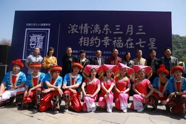 桂林市人大副主任 赵德明;桂林市委宣传部副部长、讲师团团长诸葛亚;七星区委副书记肖育明;七星区委常委、宣传部部长、副区长王海燕;七星区政协机关副主席彭小珂;桂林市文化新闻出版广电局公共文化服务科科长王林杰;七星区文化体育局局长李继武;七星区委常委,统战部长刘延风;七星区宣传部副部长艾启伦出席本次“浓情漓东三月三•相约幸福在七星”的快闪活动。