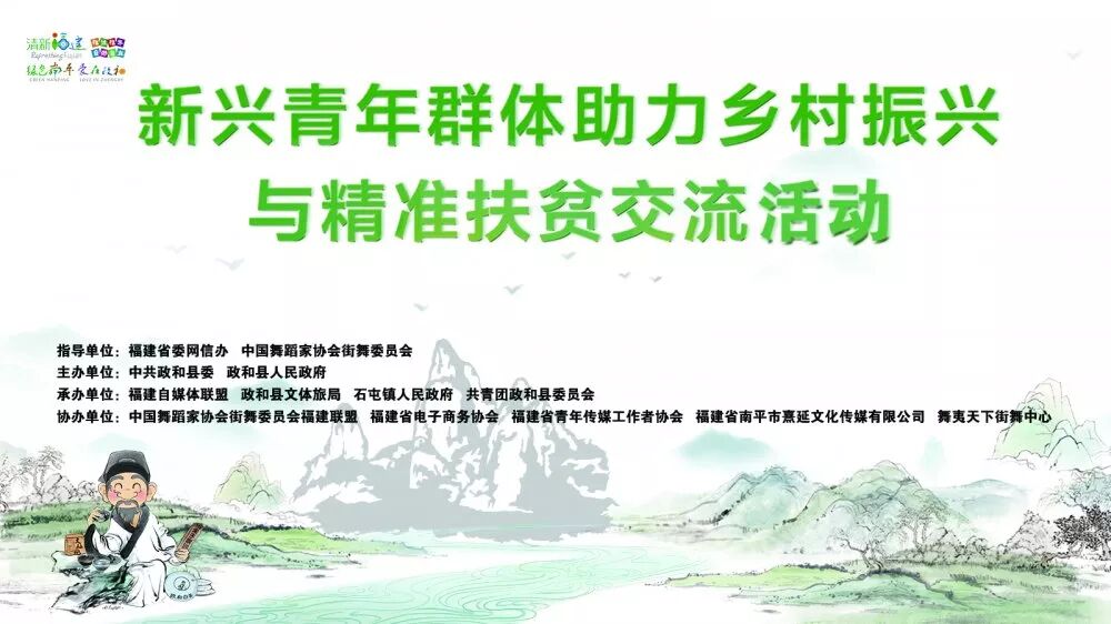 10月28日,政和新兴青年群体助力“乡村振兴与精准扶贫”交流活动在政和县宾馆七楼举行。福建省委网信办网评处处长陈建云,南平团市委书记谷国海,中国社科院中国历史研究院新媒体处处长,共青团中央新媒体平台负责人闫光宇,全国青联委员、著名网络作家周小平,中国舞蹈家协会街舞委员会副秘书长董建勇,福建省委网信办网评处副处长彭文伟,福建省电子商务协会秘书长陈晓明,福建自媒体联盟副秘书长曾群峰,共青团福建省委宣传部余运炜,伍喵视频文化发展有限公司总经理陈茜,CHUC福建街舞联盟常务副主任林清景,CHUC福建街舞联盟秘书长陈嘉文、副秘书长许泾以及县委常委、县总工会主席张华,县委常委、组织部部长陈德文、政和籍全国青联委员雷希颖,县直部门相关领导、街舞协会青年代表、基层团干代表、大学生志愿者等70余人参加本次交流活动。
