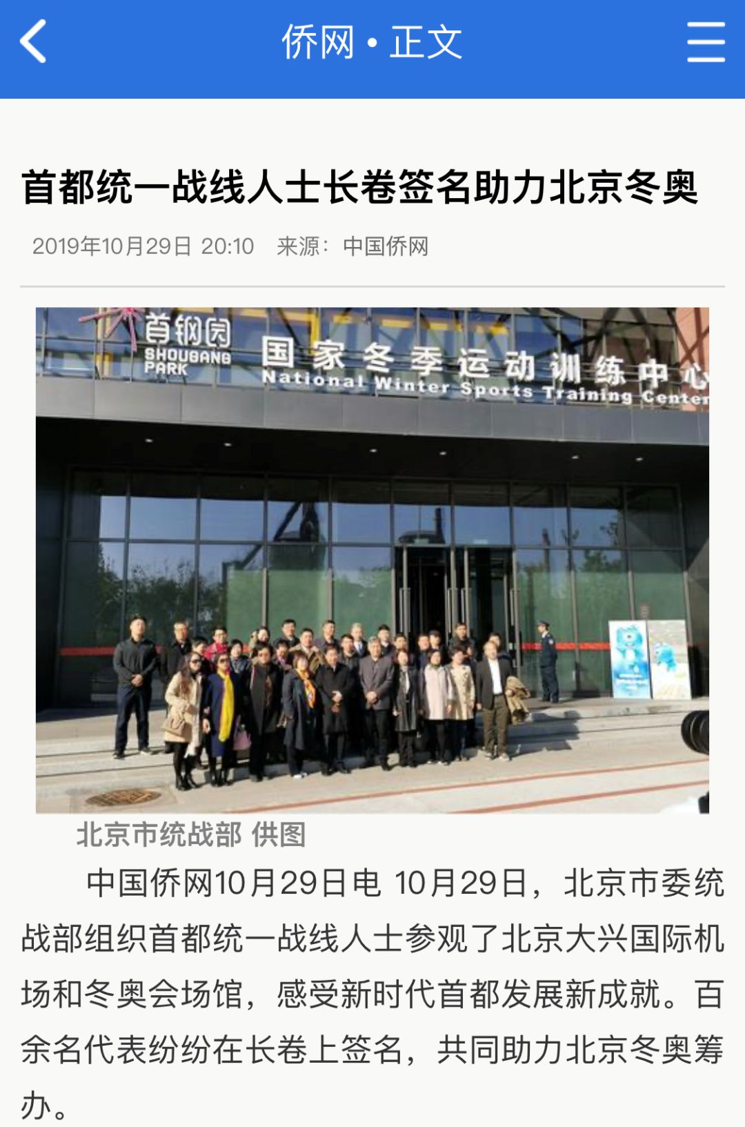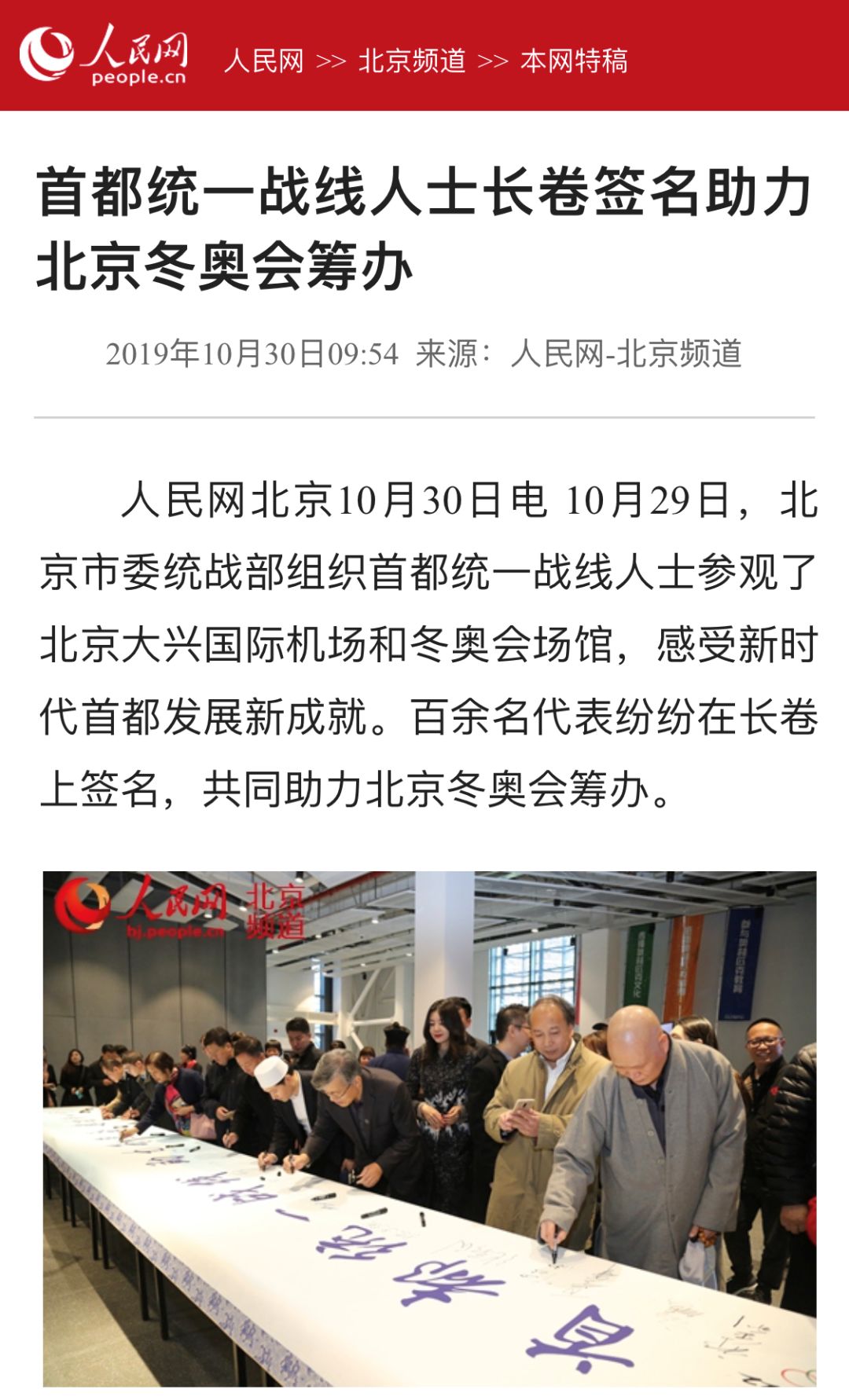 10月29日,在北京市委统战部祁金利副部长的带领下,首都统一战线人士参观了北京大兴国际机场和冬奥会场馆,感受新时代首都发展新成就。百余名代表纷纷在长卷上签名,共同助力北京冬奥筹办。中国舞蹈家协会街舞委员会常务副主任、秘书长夏锐受邀参加。