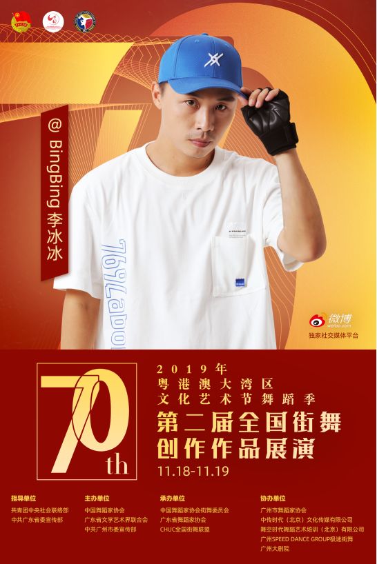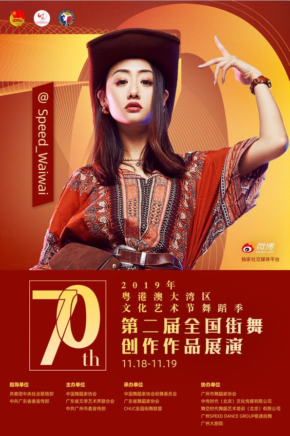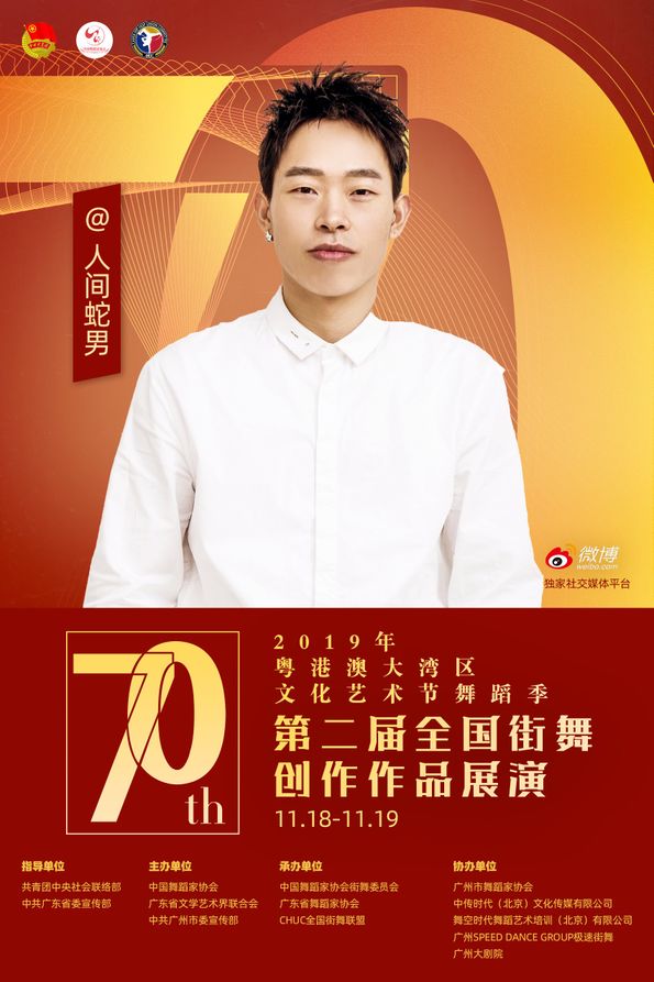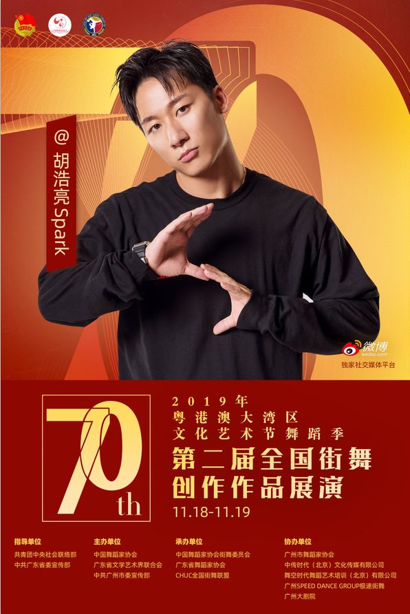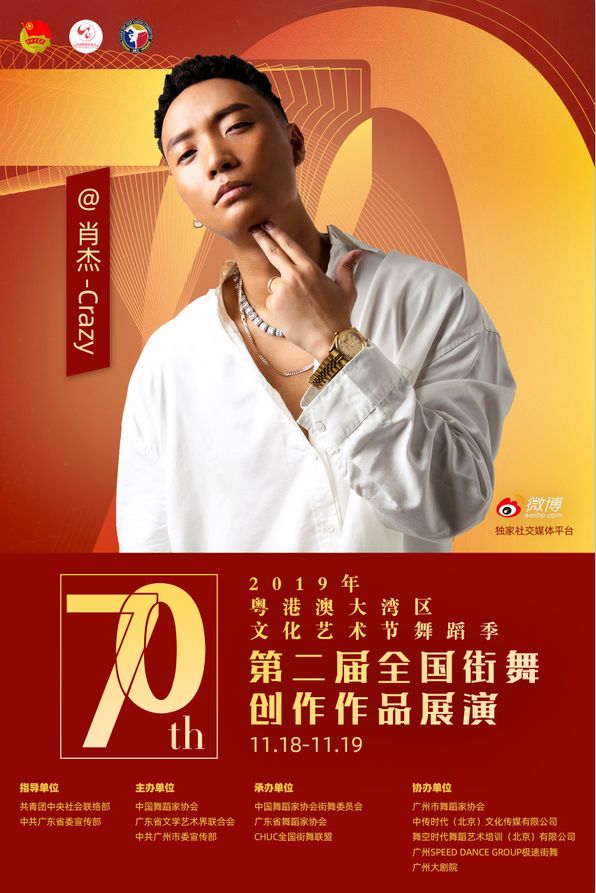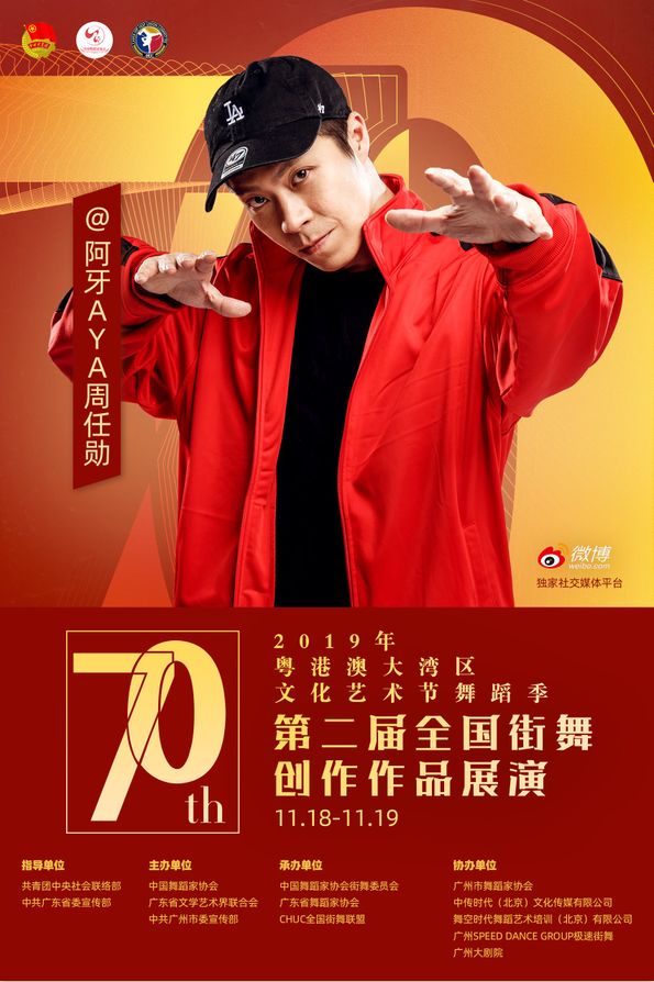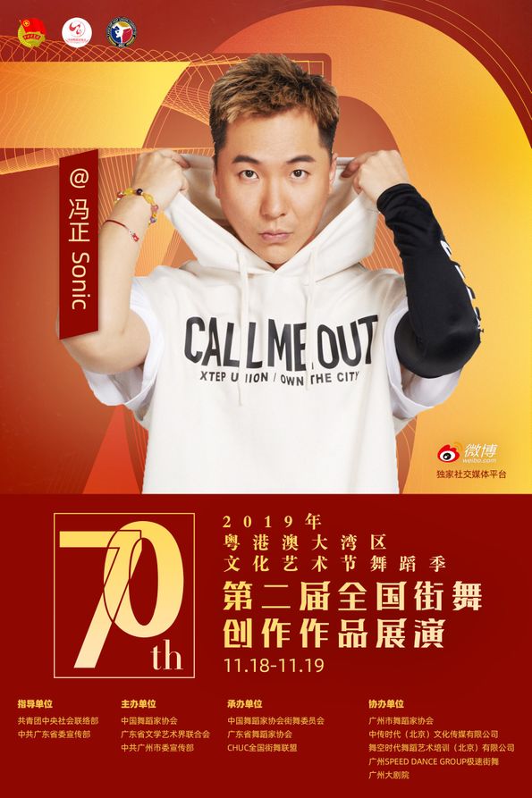 其中11月18日至19日,由共青团中央社会联络部、中共广东省委宣传部指导;中国舞蹈家协会、广东省文学艺术界联合会、中共广州市委宣传部主办;中国舞蹈家协会街舞委员会、广东省舞蹈家协会、CHUC全国街舞联盟承办;广州市舞蹈家协会、中传时代(北京)文化传媒有限公司、舞空时代舞蹈艺术培训(北京)有限公司、广州SPEED DANCE GROUP极速街舞、广州大剧院协办;微博作为独家社交媒体平台的“第二届全国街舞创作作品展演”将在广州大剧院歌剧厅举办!
