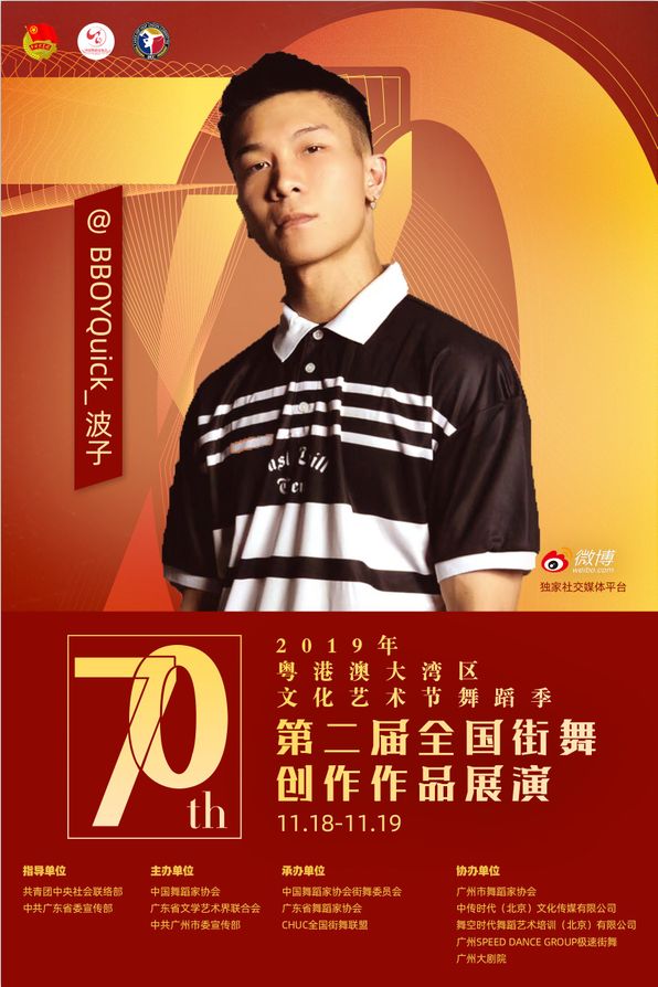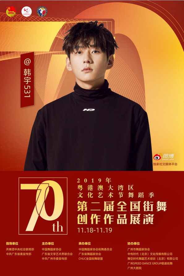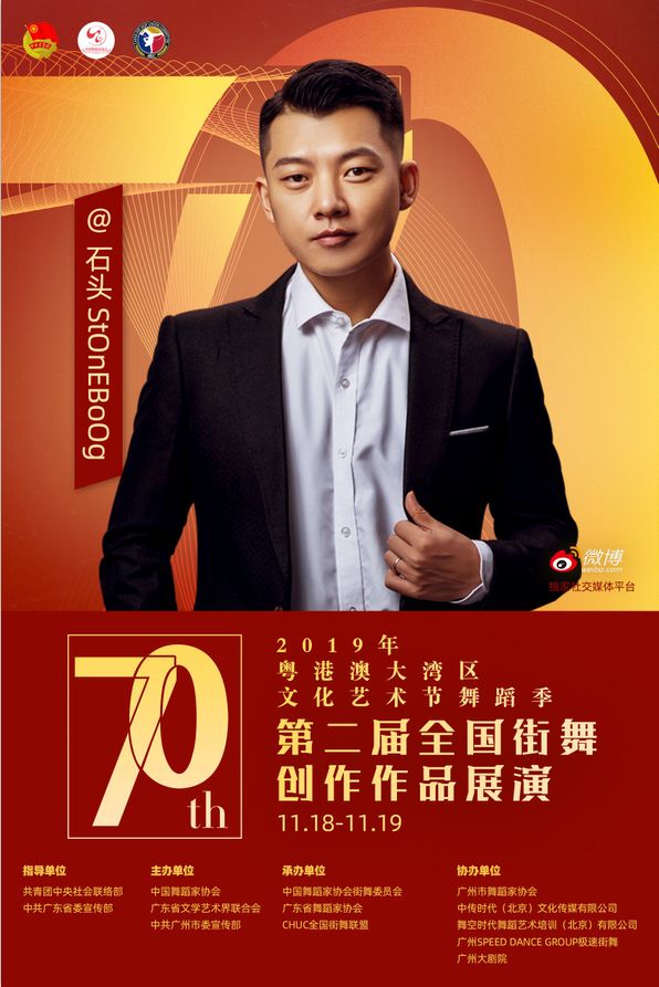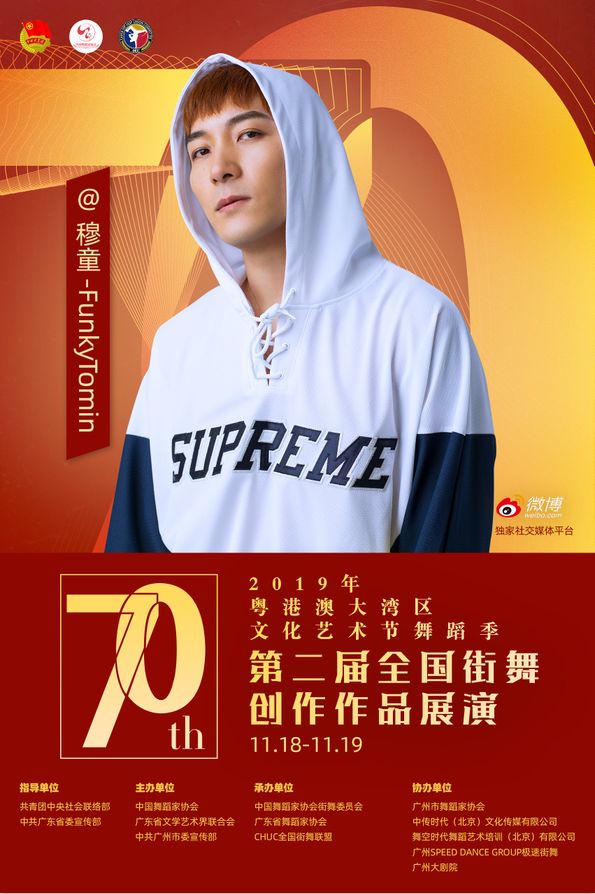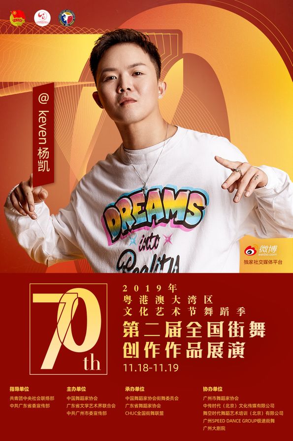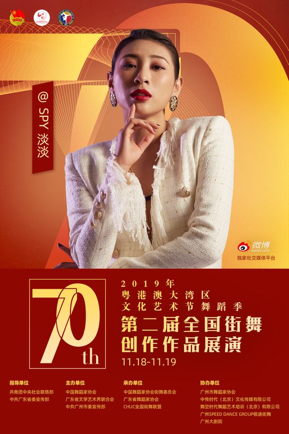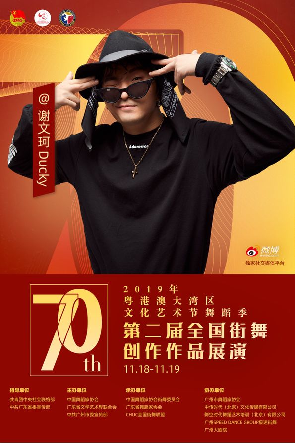 其中11月18日至19日,由共青团中央社会联络部、中共广东省委宣传部指导;中国舞蹈家协会、广东省文学艺术界联合会、中共广州市委宣传部主办;中国舞蹈家协会街舞委员会、广东省舞蹈家协会、CHUC全国街舞联盟承办;广州市舞蹈家协会、中传时代(北京)文化传媒有限公司、舞空时代舞蹈艺术培训(北京)有限公司、广州SPEED DANCE GROUP极速街舞、广州大剧院协办;微博作为独家社交媒体平台的“第二届全国街舞创作作品展演”将在广州大剧院歌剧厅举办!