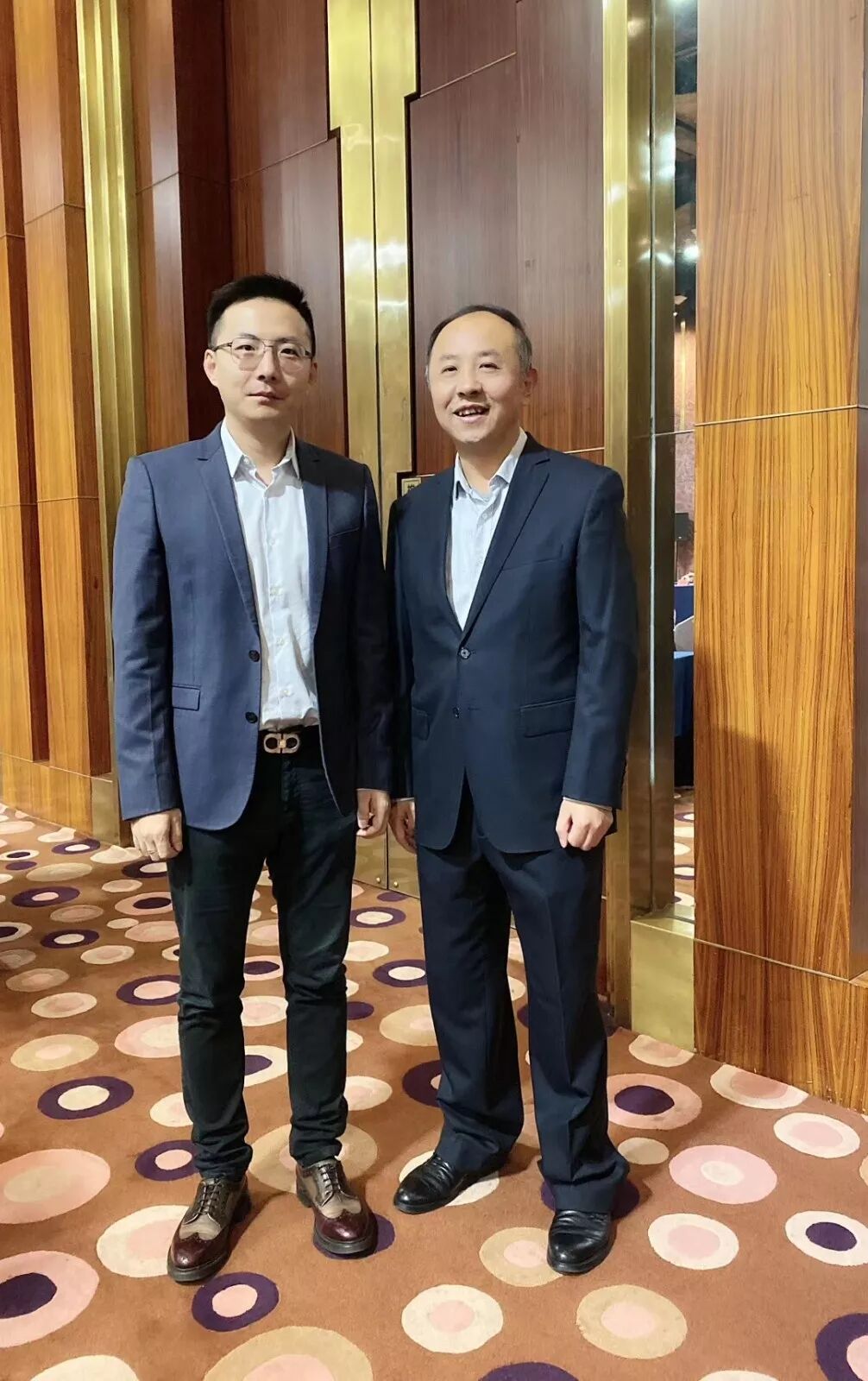 中央统战部六局局长张明(右)与中国舞蹈家协会街舞委员会常务副主任、秘书长夏锐(左)合影