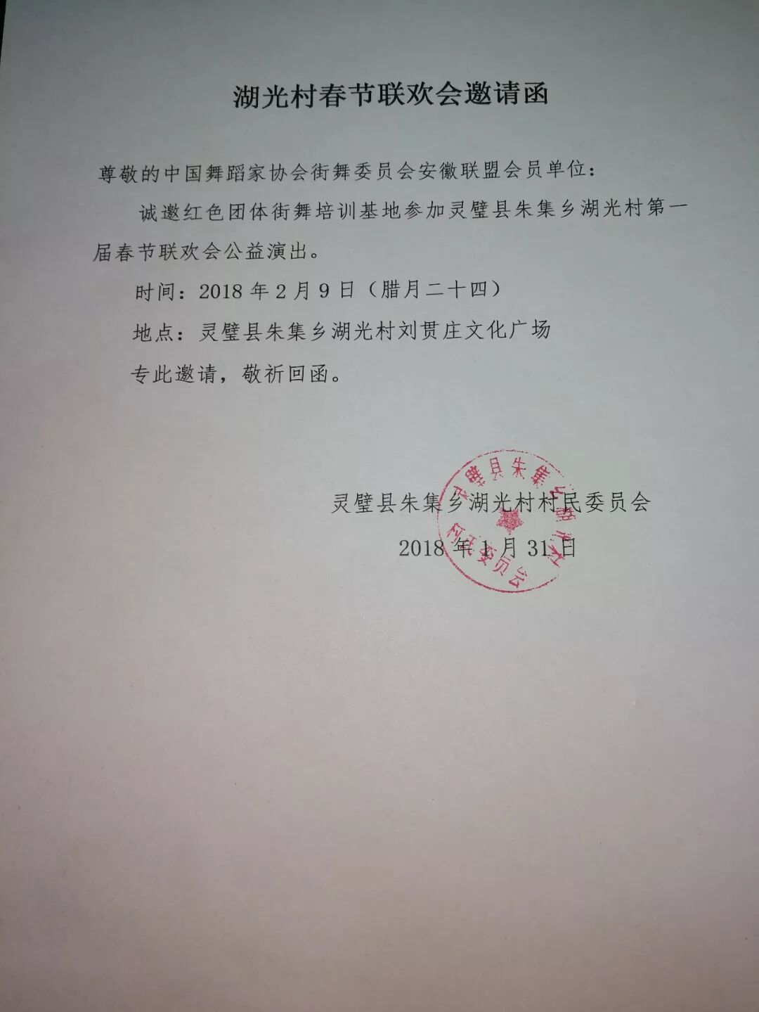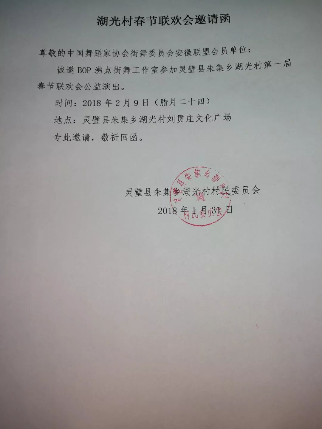【CHUC安徽联盟】中国舞蹈家协会街舞委员会安徽联盟受邀参加~2018湖光村“脱贫出列 幸福出发”春节公益联欢会!