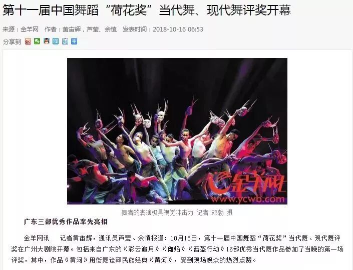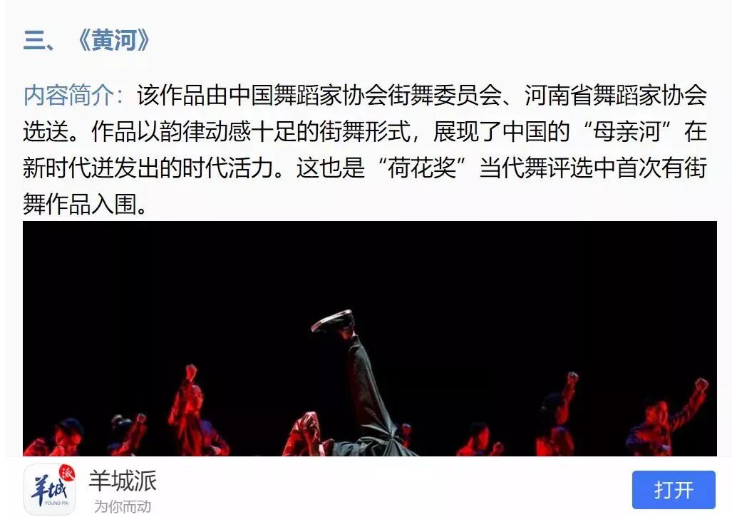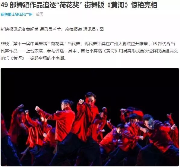 新快报:《49 部舞蹈作品追逐“荷花奖” 街舞版《黄河》惊艳亮相》
