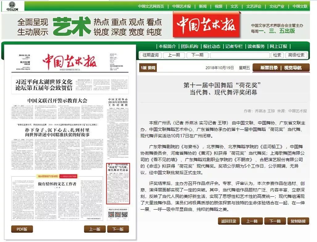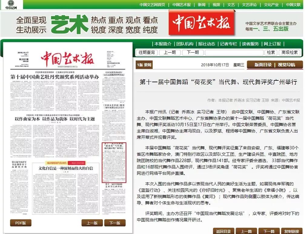 中国艺术报:《第十一届中国舞蹈“荷花奖”当代舞、现代舞评奖广州举行》