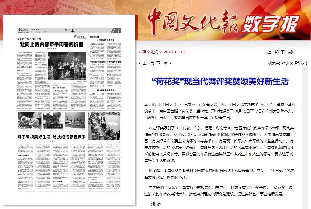 中国文化报:《荷花奖”现当代舞评奖赞颂美好新生活》