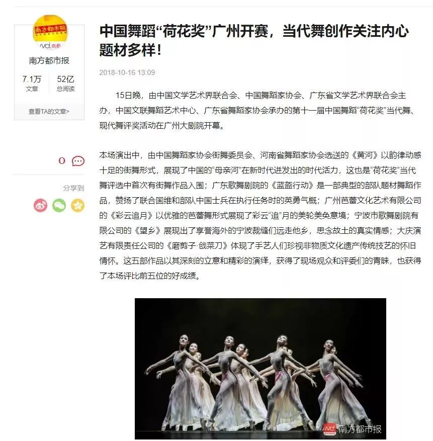 南方都市报:《中国舞蹈“荷花奖”广州开赛,当代舞创作关注内心题材多样!》