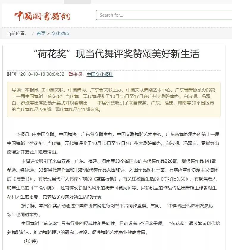 中国图书馆网:《“荷花奖”现当代舞评奖赞颂美好新生活》