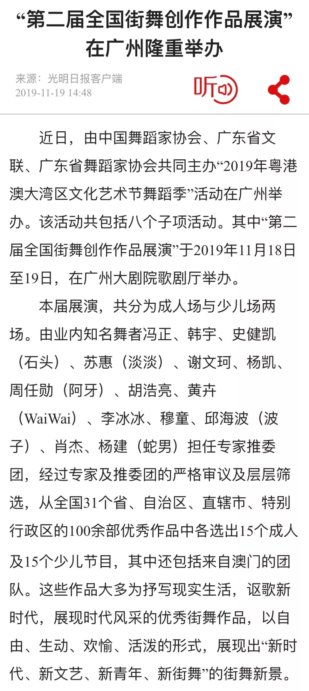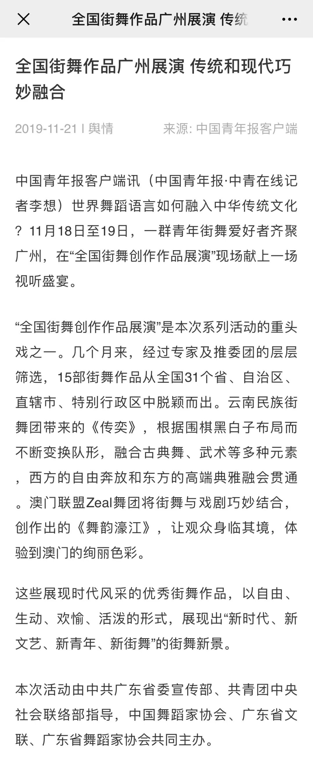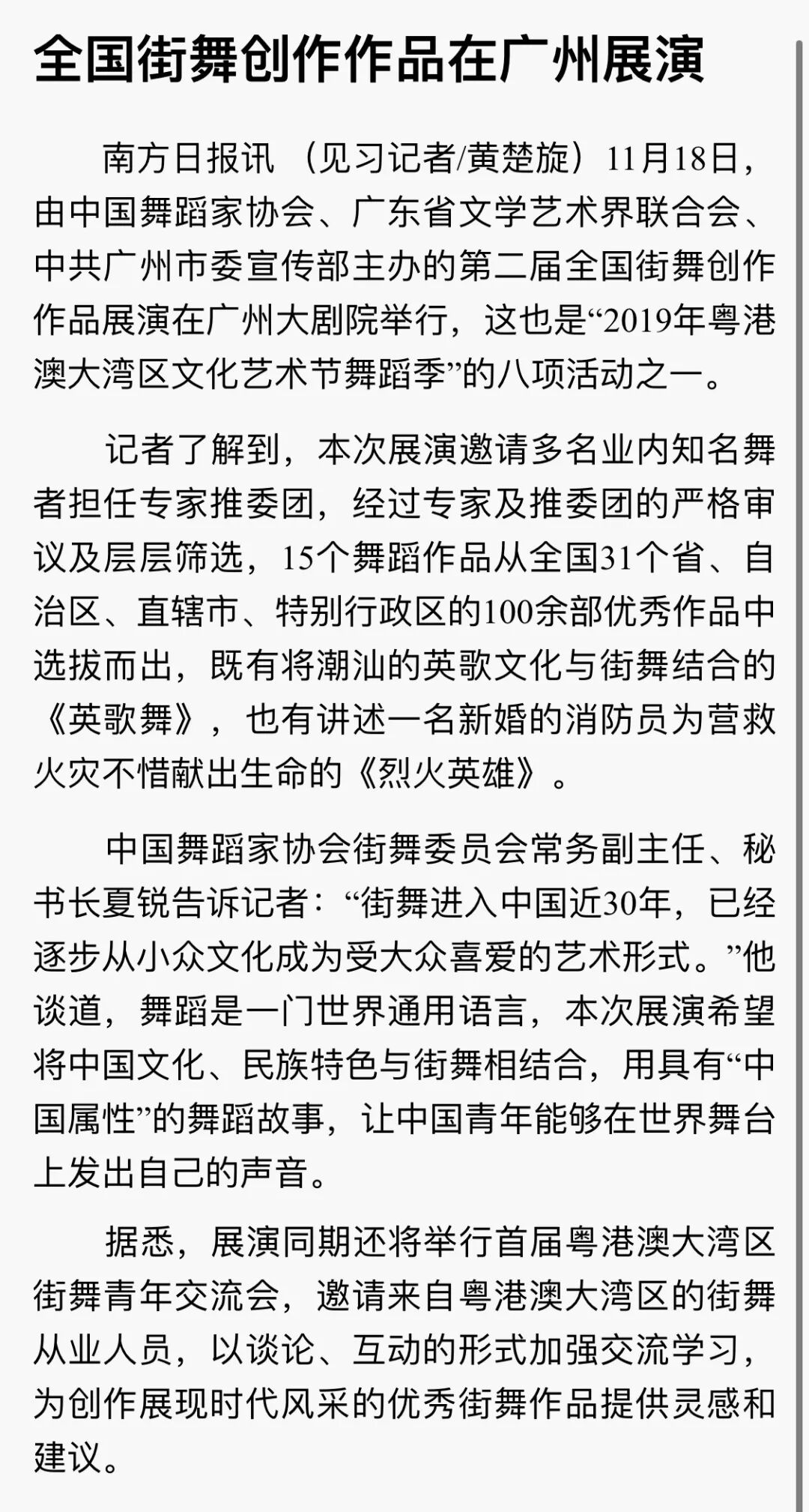 广州举办“第二届全国街舞创作作品展演”及“首届粤港澳大湾区街舞青年交流会”