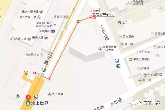 摆渡车候车区:可乘坐地铁2号线在 “海上世界” 站点C出口,步行170米抵达