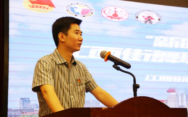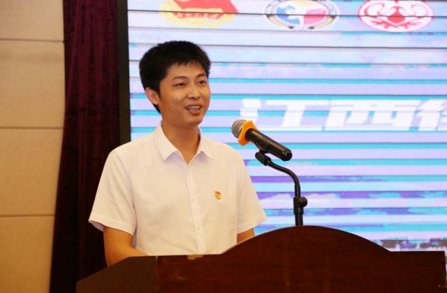 接下来共青团江西省委志愿服务和社会联络部甘小平部长进行发言讲话,他在发言中提到,团省委对江西联盟的工作是非常重视与支持的,并向大家介绍了共青团是什么样的组织,让大家更加深刻的认识共青团。甘部长还说到,共青团江西省委的各级领导也十分关注江西街舞联盟的情况,同时也非常关心我们街舞群体和个人的发展,街舞公益课堂启动后,各个地级市团组织也会积极配合我们各市街舞联盟开展公益课堂的活动,共同完成这一公益事业。甘部长还提到了中国舞蹈家协会街舞委员会编创的首部街舞舞剧《黄河》,并建议江西的街舞舞者应该在舞蹈编创上多融合多学习,打造出江西特色的街舞作品。甘部长在发言结束后摆出了街舞中“炸了”的手势引起会场中一片欢声笑语和掌声。
