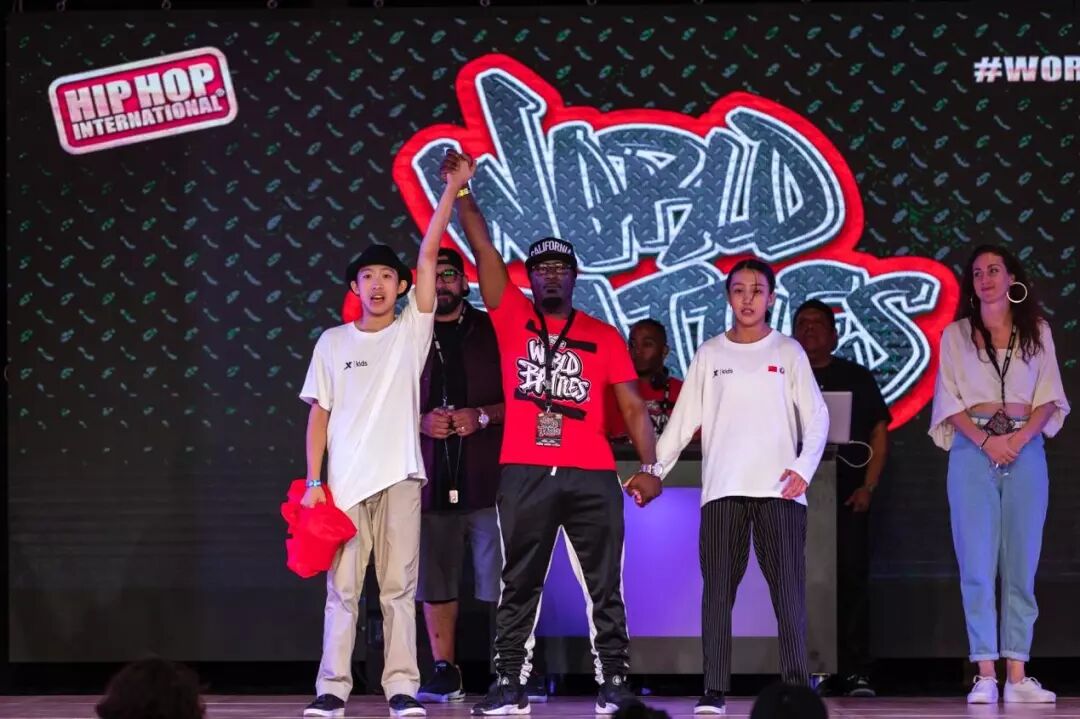 让人意想不到的是,仅仅20分钟过后,又一则爆炸性的消息,再次让圈内舞者激动不已。刚刚获得Popping项目冠军的周钰翔与年仅11岁的中国小舞者喻文乐搭档拿下了AllStyle 2on2项目的冠军!这一刻,首次一起组团出征的周钰翔、席嘉琪、喻文乐、马梓茗创造了美国HHI总决赛的历史,周钰翔成为HHIBattle项目首位单届双冠王,而喻文乐则成为了HHI历史上最年轻的世界冠军!