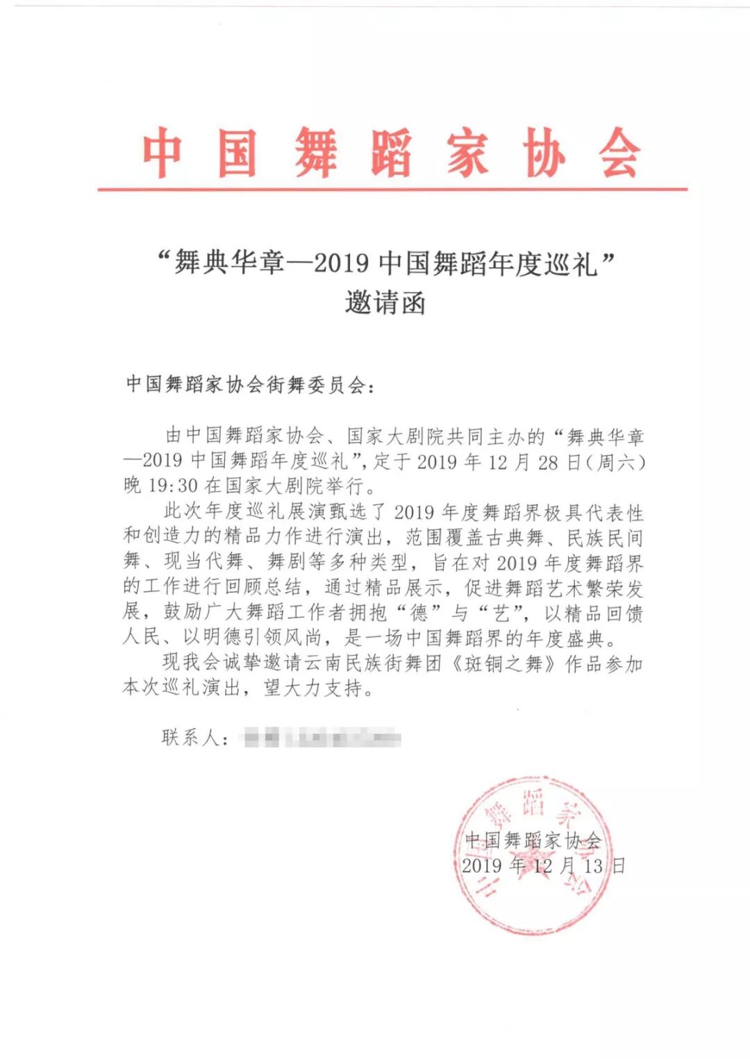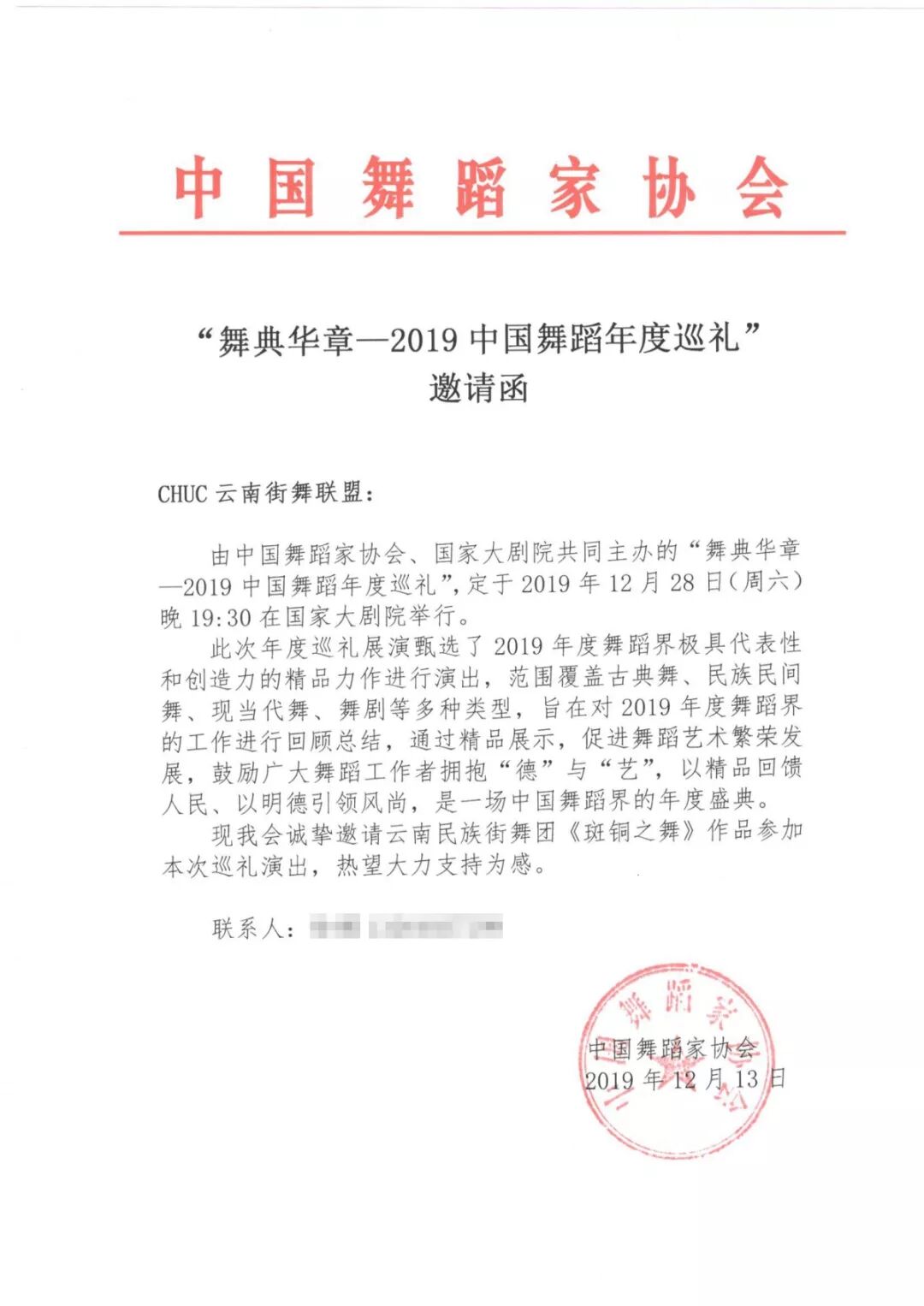 由中国舞蹈家协会、国家大剧院共同主办的“舞典华章——2019中国舞蹈年度巡礼”,将于2019年12月28日晚19:30在国家大剧院举行。
