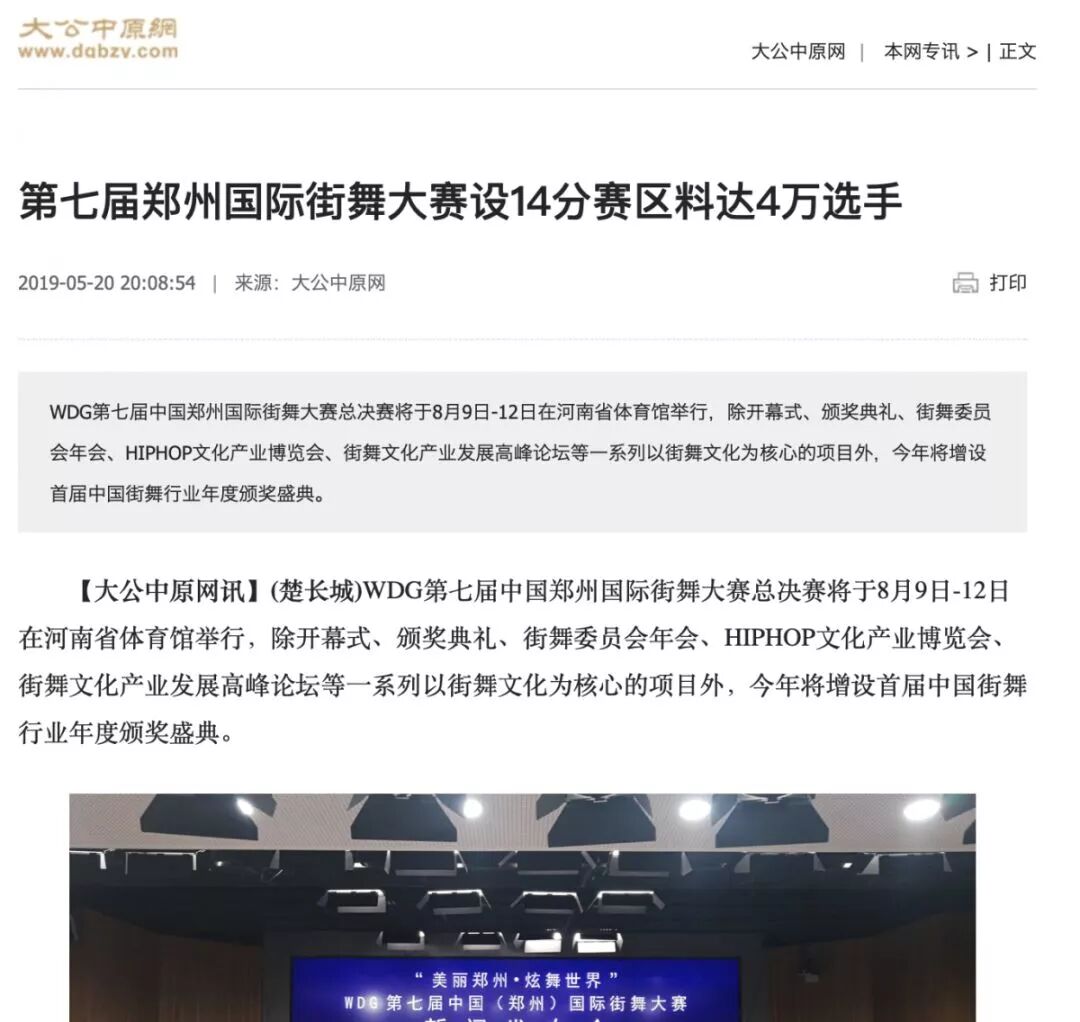 郑州日报:总决赛即将开启!WDG第七届中国郑州国际街舞大赛亮点更多更精彩