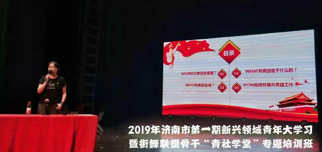 本次活动由中国舞蹈家协会街舞委员会济南联盟成立大会、2019年济南市第一期新兴领域青年大学习暨街舞联盟骨干“青社学堂”专题培训、济南市街舞从业青年Battle秀三个部分组成。