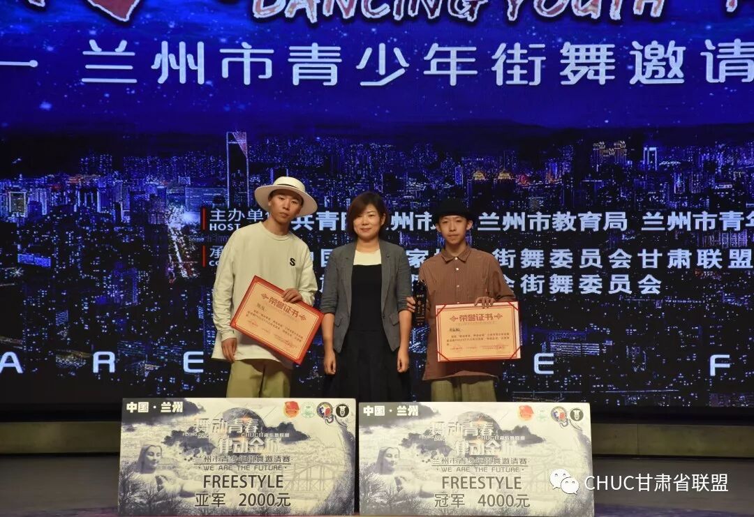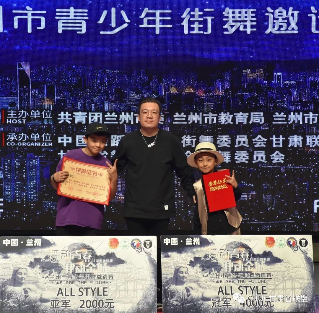 最终,来自甘肃联盟年仅10岁的小选手牛宝从两百多名选手中脱颖而出,一举夺得少儿allstyle项目的冠军,兰州KEEP毅禾街舞学校张胜节获得少儿allstyle亚军;14岁的中国国家队成员、HHI世界冠军周钰翔一举斩获了funkystyle、freestyle冠军,临夏舞者尕娃摘得breaking组冠军,来自北京的曾智頔、西安的陈阳、兰州新力量街舞工作室的胡金泉分别获得这三个项目的亚军。